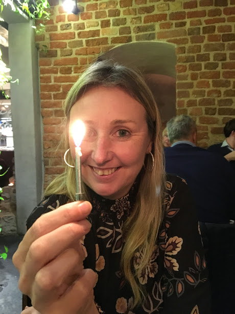 God mat og god drikke, men det kjekkaste no var at eg heilt hadde gløymt at eg hadde bursdag!! Eller, rettare sagt – eg har jo aldri visst at eg har bursdag 11. november på Polen sin nasjonaldag! Eg skjøna ingenting då eg akkurat hadde satt gaffelen i desserten og inn frå venstre kom det ein kelner og treiv til seg tallerkenen. Samtidig inn frå høgre kom ein ny tallerken og denne gangen hadde desserten fått kakelys og fyrverkeri 🙂 Og både kelnarane og resten av gjengen sang bursdagssang og greier. Ein skikkeleg høydare på kvelden 🙂 Den som hadde det enda kjekkare enn meg, var han som sat nederst ved border og sitra av spenning og kunne nesten ikkje venta på å sjå reaksjonen min 🙂