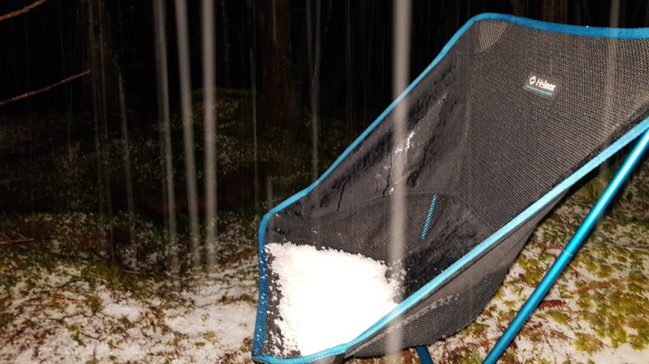 Og no var det slutt på regnet, det gjekk over til ei blanding av hagl og snø…