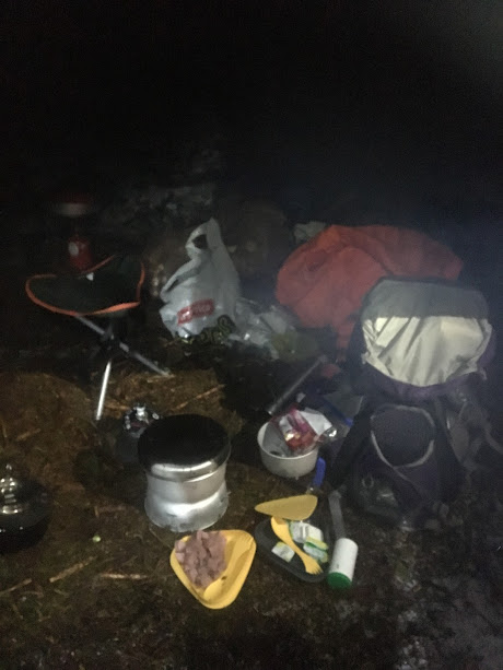 At det går an å rota SÅ mykje når ein har med seg SÅ lite på tur, er heilt utruleg. Eg skjønar jo godt at Svein Vidar ville sitja utanfor for seg sjølv 😉 Det ser jo ut som ein romleir kor 14 personar har budd i eit halvt år… Nei, her må det skjerpings til – dette kan vi ikkje vera bekjent av!