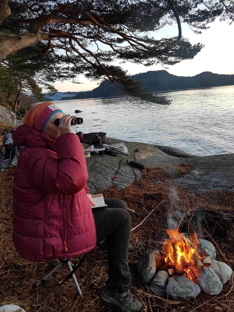 …..og kikra på nokre fuglar som duppa utpå sjøen. Ann Irene sa ho såg med det blotta auga at det var måker, men ein veit jo aldri… 😉