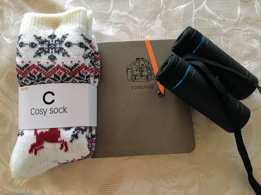 …..tre av julepresangane mine 🙂 Sokkar frå Ann Irene, turkikkert frå far og mor (eg har ein mistanke om at det er mest for at eg skal kunna kikka «heim») og…
