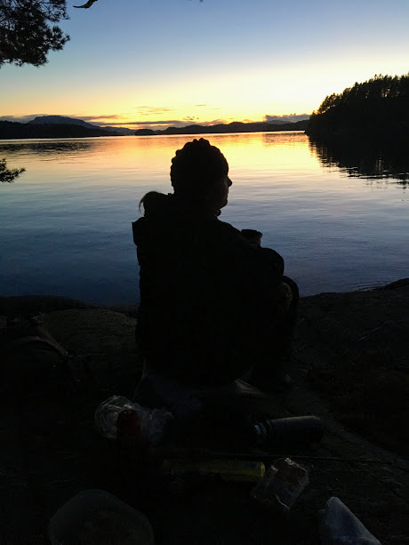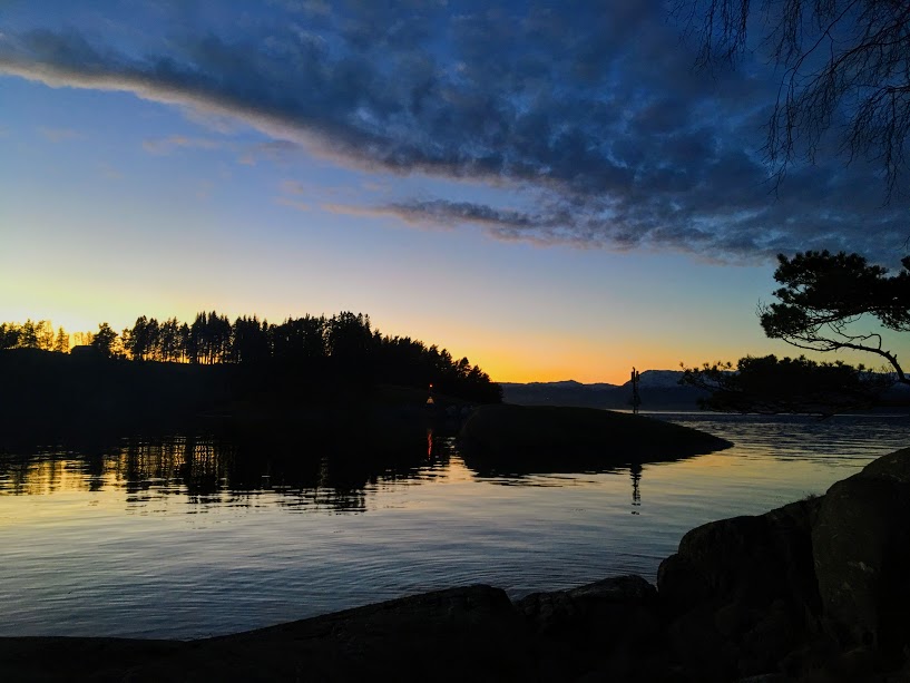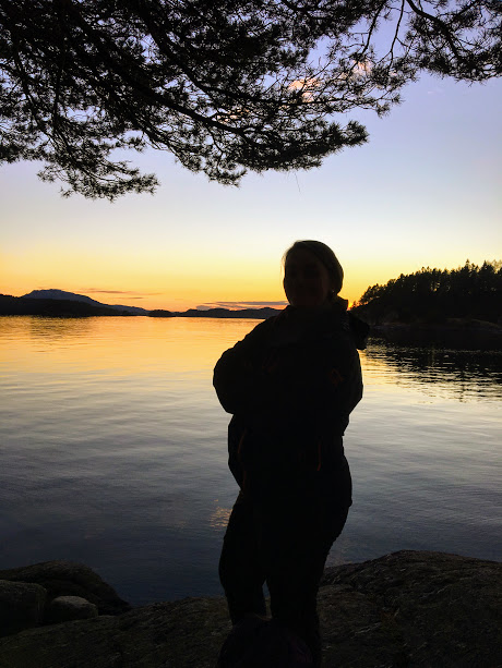 Etter ein kort tur gjennom skogen, stod vi brått på enden av nestet – og fekk med oss ein fin solnedgang 🙂