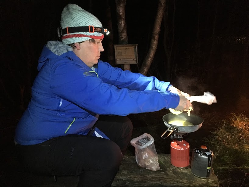 Eg synes sjølv vi var veldig flinke til å koma oss ut og gjennomføra den Netflixfrie dagen vår etter at vi innførte den i fjor høst. Vi har vore ute og kokkelert både med og utan tarp, på bål, på stormkjøken og Omniaovn – og uansett ver 🙂 I går var vi klar for fyrste middag ute i 2018 🙂