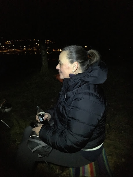 Det var ein kjempeflott kveld i går! Ikkje kaldt, heilt stille, stjerneklart og vi fekk ei flott utsikt over alle lysa innover mot Rosendal 🙂 Det er flott utsikt her på dagtid, men jammen er det ein flott plass om kvelden og.