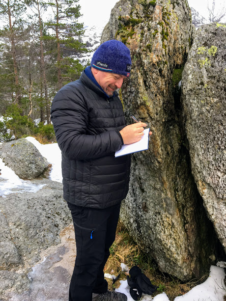 Så kaldt var det at Per Ivar og eg fann ut at her var det om å gjera å stå tett saman for å halda på varmen 😉 No skriv vi oss i boka og går ned att, var beskjeden i frå Ann Irene då 🙂
