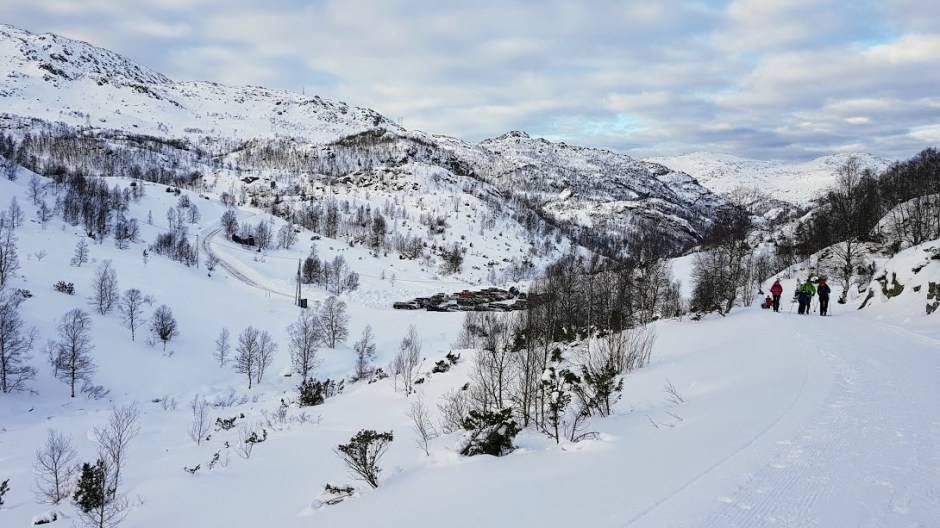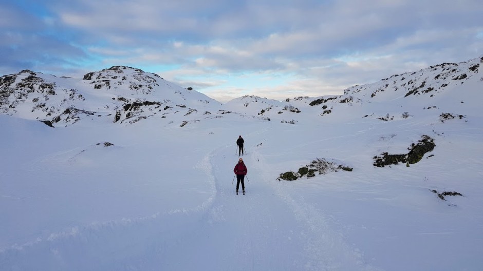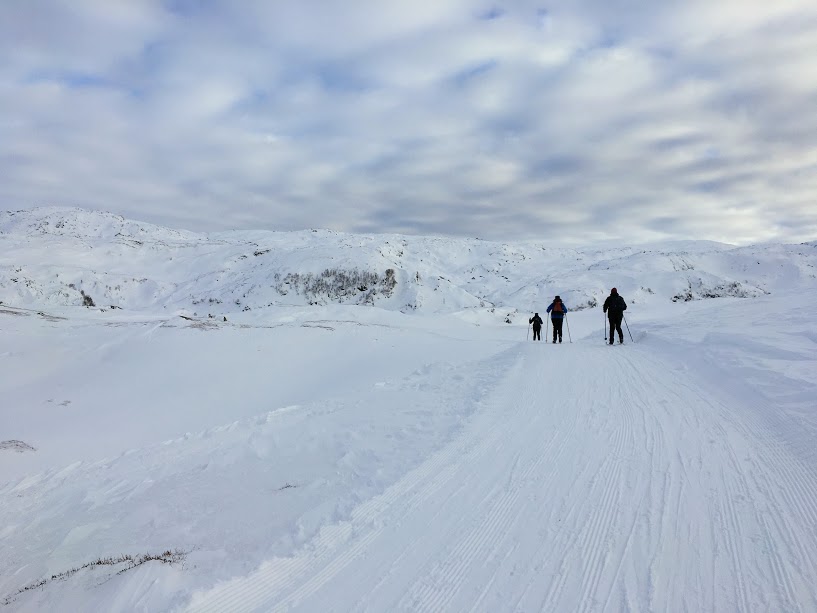 Etter tre kveldar på rad med skiturar i myrket, var det på tide å ta seg ein skitur i dagslys. Og i går, søndag, var det meldt strålande ver, så då fann vi ut at vi skulle ta turen rundt Fagnabotn, Nesjastølsvatnet, Reikatindane, Nautavatnet og ned til parkeringa igjen. Veldig kjekt var det at Alice og Judith ville vera med oss på tur denne dagen 🙂