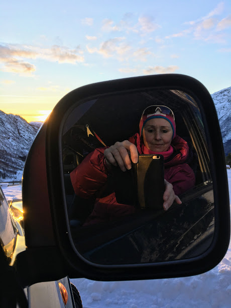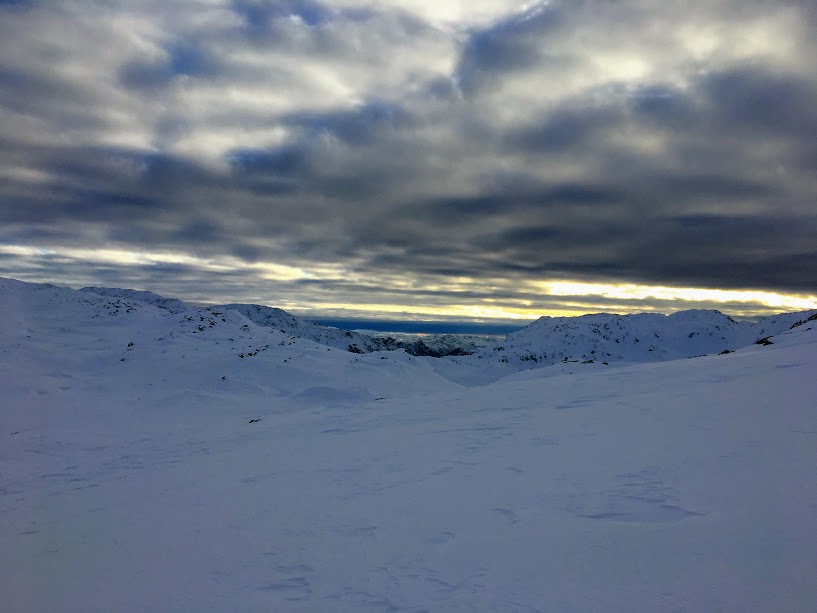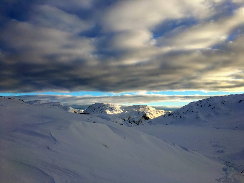 Som dåke skjønar gjekk det ikkje fortare med meg på ned enn at eg kunne nyta den fine utsikta av sol på fjelltoppane 😉