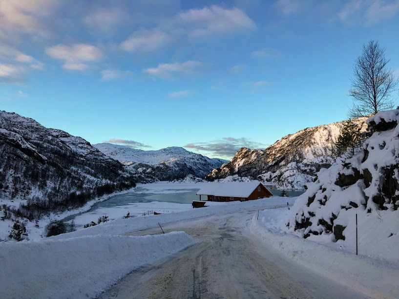Når vi kom ned til Matrekrysset måtte vi nett ta ein avstikkar mot Matre svingane…