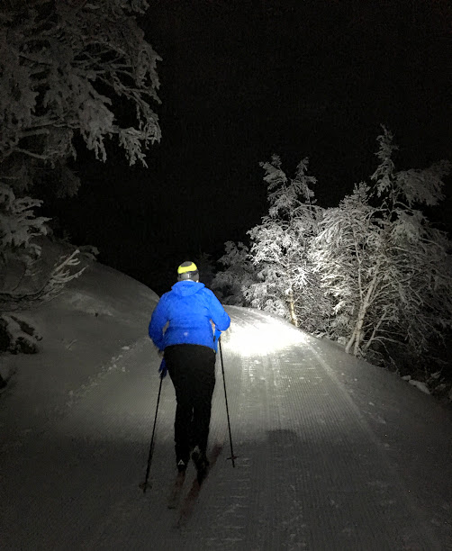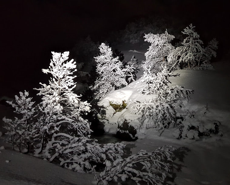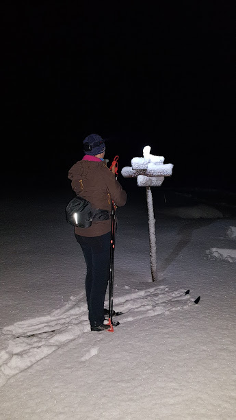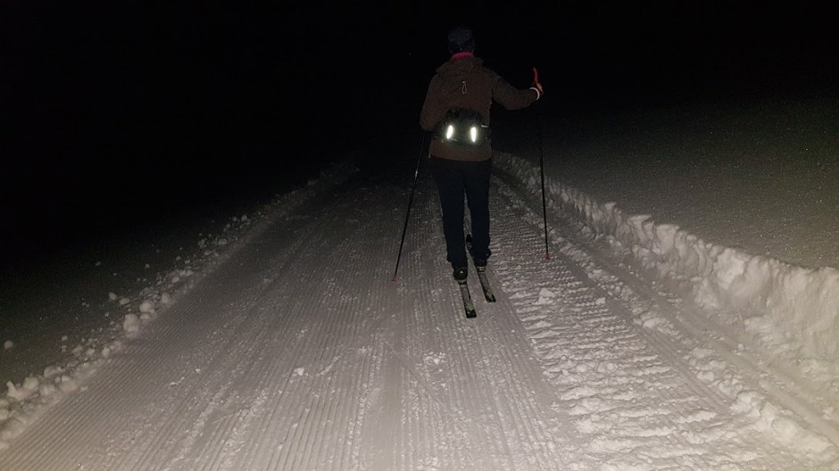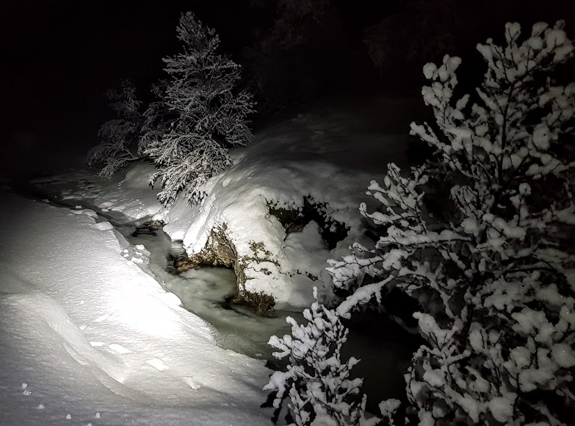 Det var ikkje fullmåne i går, men flott måneskin likevel. Etter å ha kome oss opp den bratte bakken etter Fagnabotn, slo vi faktisk av hovudlyktene våres og gjekk resten av turen inn til Nautavantet i måneskin. Det var utruleg flott – vi kikka meir rund oss enn framfor oss i skiløypa 🙂