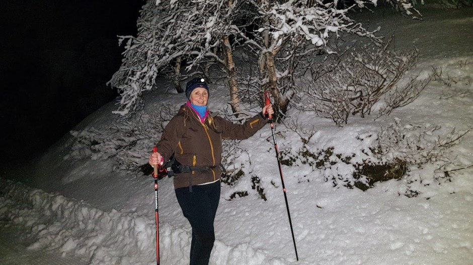 No er vi berre utstyrt med ein Iphone og ein Samsung mobil på desse turane våres, og dei som føl litt med på Bobla veit at kvaliteta på bileter tatt i myrket er så som så. Men det var rett og slett altfor fint i fjellet i går – så eg må prøva å gje dåke eit lite inntrykk av det. Det er foressten Samsungen til Jorunn som tar dei beste bileta….
