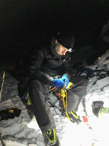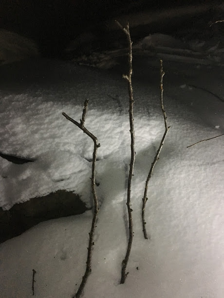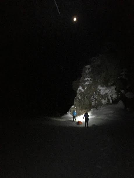 Så då måtte han nøya seg med å testa kvaliteten på isen i går kveld – så får han/dei ta turen tilbake og ordna med sikringspunkt og sikring ein anna dag. Kanskje greit å ta det i dagslys og, tenkjer eg – sjølv om eg var imponert over lykta han hadde satt opp 🙂