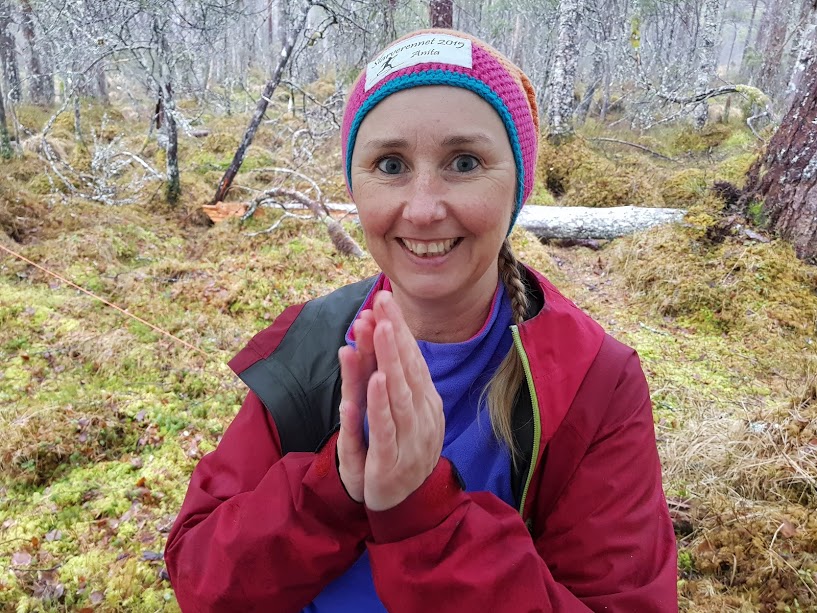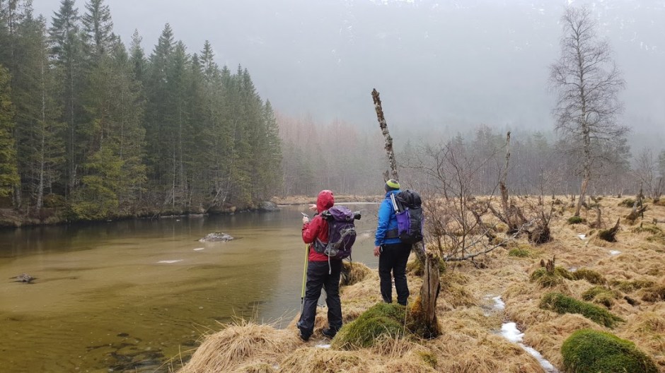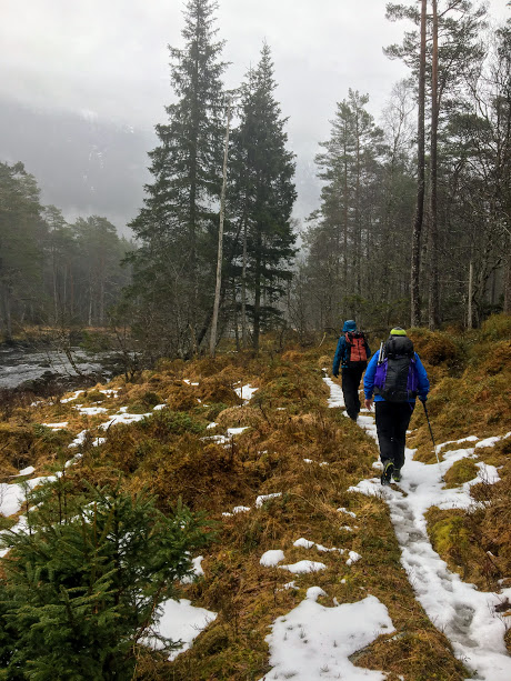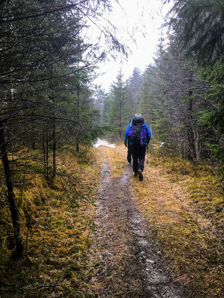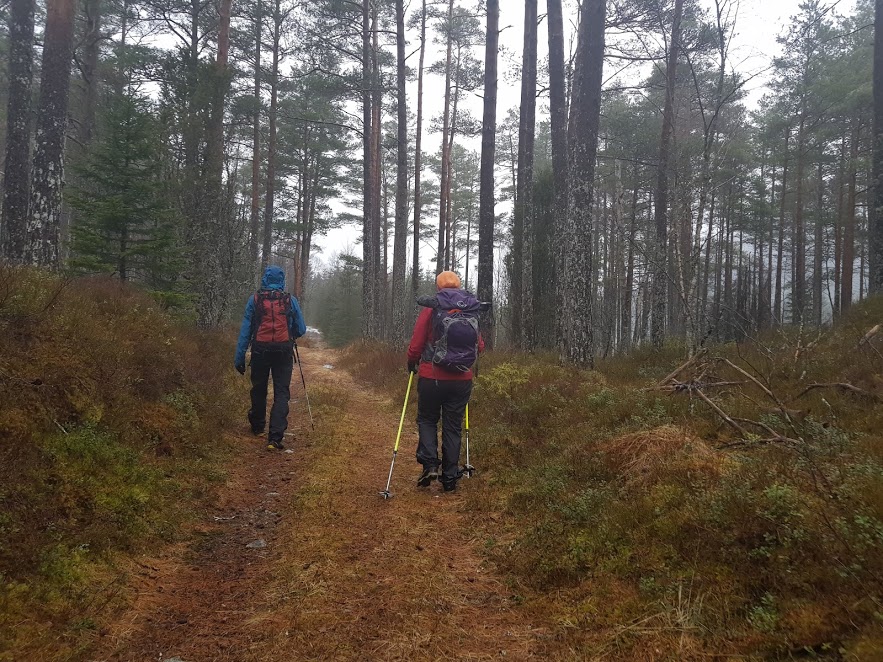 Det var fint å gå her – i utgangspunktet ana eg jo ikkje at det gjekk skogsveg her i det heile tatt. Litt vått i dag, spesielt for dei som gjekk i skisko…. 😉