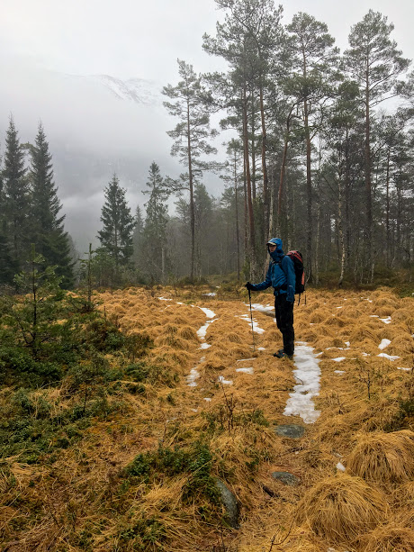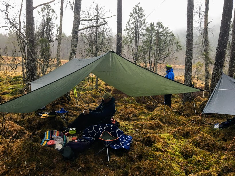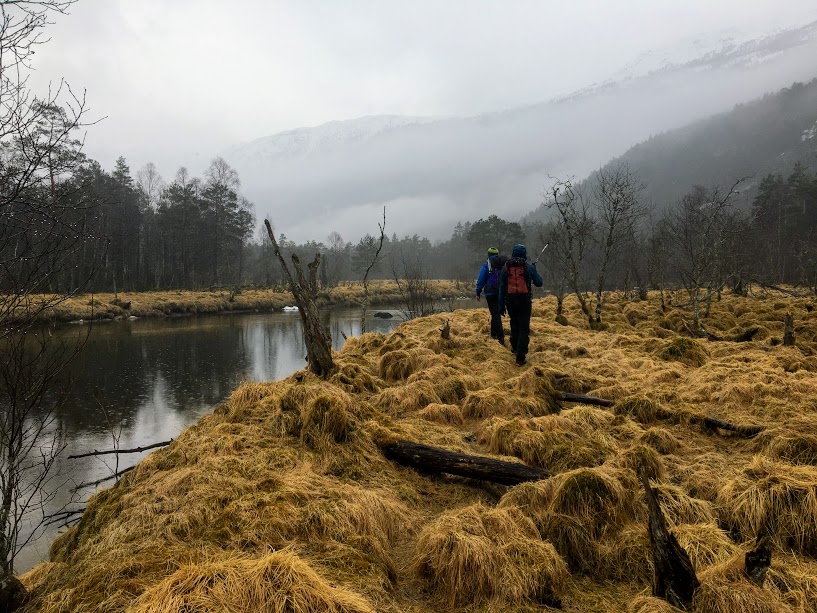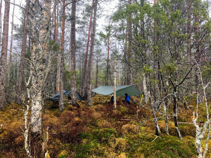 Men her var det ingenting å henga tarp(ane) i, så vi måtte gå litt til….