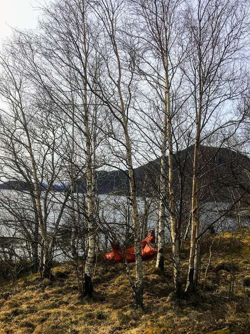 Endeleg stig temperaturane og det byrjar å likna vår 🙂 Jorunn må og ha fått vårfølelsen i dag, for på mobilen min tikka det inn bileter av at ho hadde hengt opp hengekøya si på Holmen i Dimmelsvik – og i tillegg inviterte ho på middag i fjæra 🙂