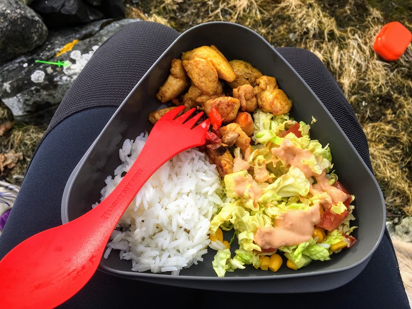 Men så måtte vi konsentrera oss om middagen. På menyen i dag: Kylling med salat og ris 🙂