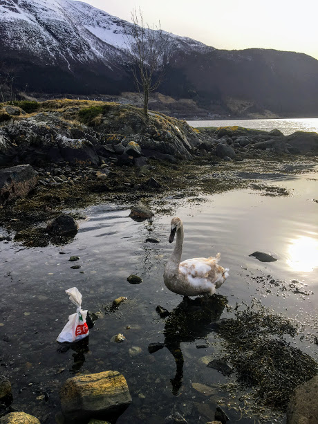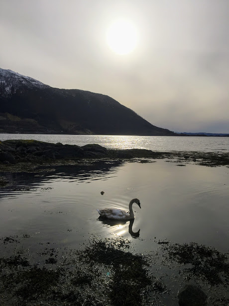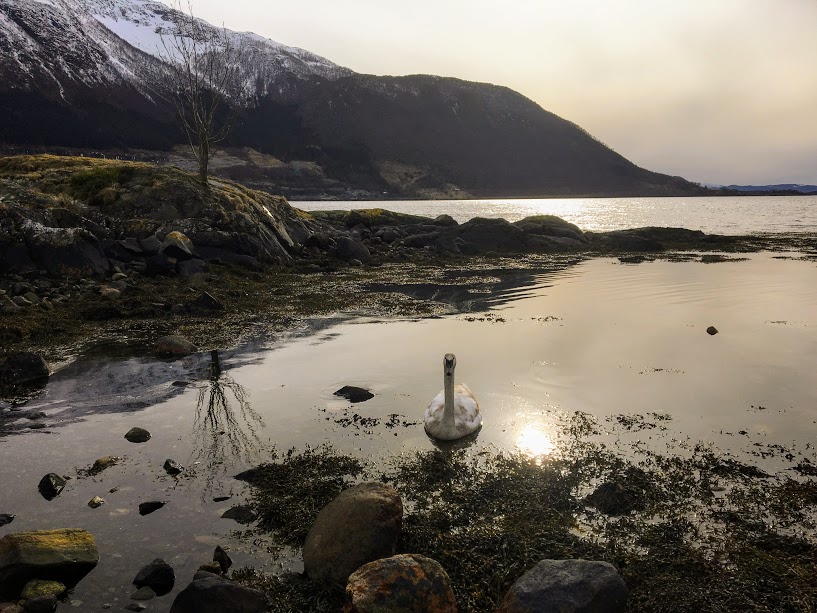 Vi vart forresten litt forstyrra under middagen og, for brått dukka det opp enda ein svaneunge.