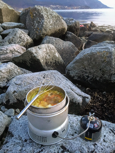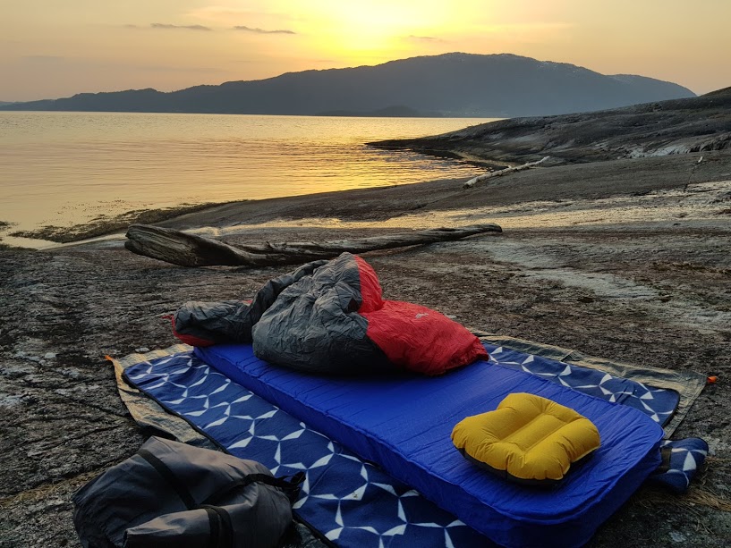 Eg trur ikkje klokka var altfor mykje før vi bestemte oss for å ta kvelden. Jorunn tusla bort på svaberget sitt og eg inn i skauen til hengekøya mi. Det tok litt tid å baksa seg til med liggjeunderlag, lakenpose, sovepose og dunjakker, men omsider kunne eg slå av musikken og lyset frå hovudlykta og finna roen 🙂