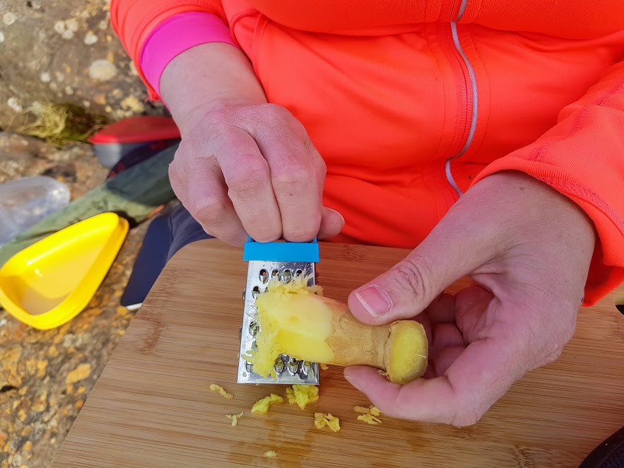 ….å raspa ingefær og kvitlauk 🙂 Ja, og så måtte eg skjera limebåtar 🙂