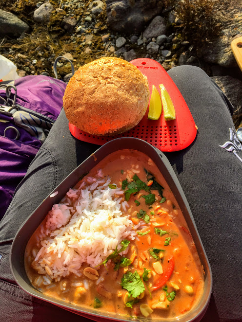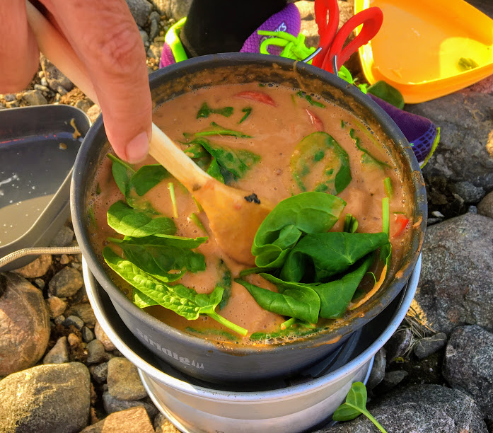 20 + grader ute og ein skulle tru vi nytta høve til å dra fram solstolane og slanga oss i dei, men kva gjorde vi? Jo vi køyrte opp i fjellet til Staffivatnet for å laga Vestafrikansk peanøttsuppe med kylling til middag…. 🙂