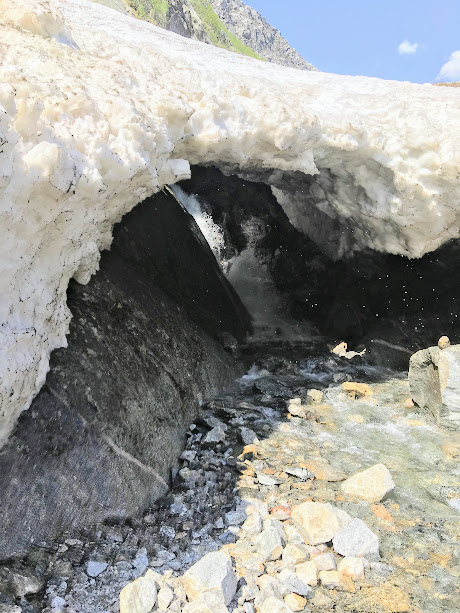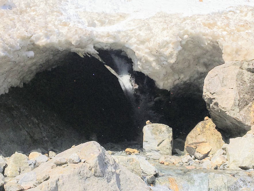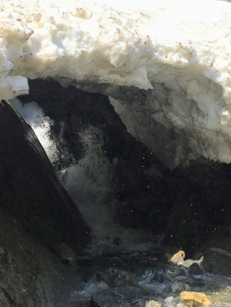No angra eg på at eg ikkje hadde med skikkeleg kamera, for eg fekk ikkje tatt bileter som viser kor flott dette var. Inni her var det ein liten foss, og ved utgangen smelta snøen slik at det såg ut som om det regna 🙂