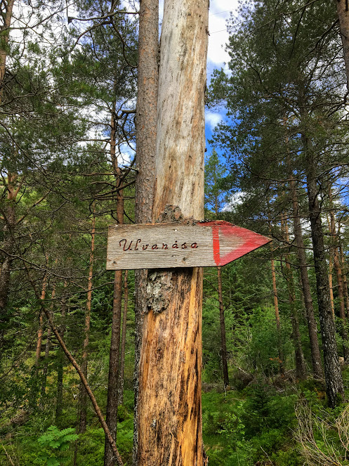 Ann Irene som, merkeleg nok, aldri har vore lenger enn opp til Dyrrindo denne vegen, ymta frampå at ho godt kunne tenkt seg å gå opp på toppen bak hytta. Den tanken fekk eg ho kjapt vekk i frå med å forklara at ho diverre ikkje kom til å sjå Ulvanåso derifrå – då må vi nok enda lenger opp. Det hadde vi ikkje tid til på laurdag – ho hadde invitert gjester på middag. Men, kanskje ein anna dag???