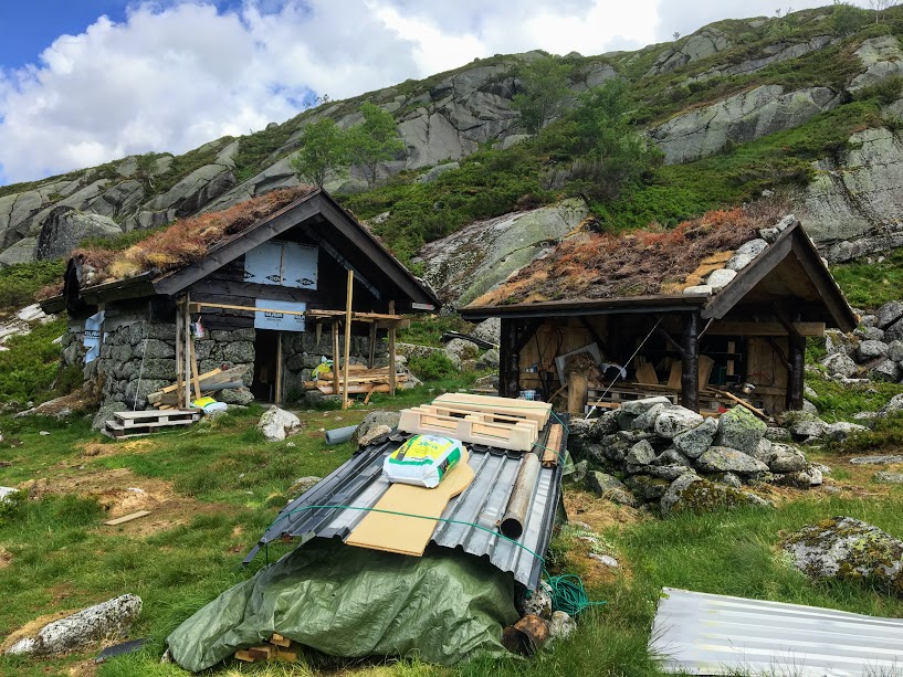 No veit vi jo ikkje kortid dei har planlagt å vera ferdig med arbeidet på hytta og området her, men vi hadde innbilla oss at dei var komen litt lenger….