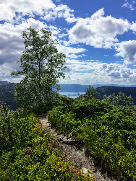 …..før ein er oppe, ute av skogen og kan snu seg og sjå ned på fjorden….