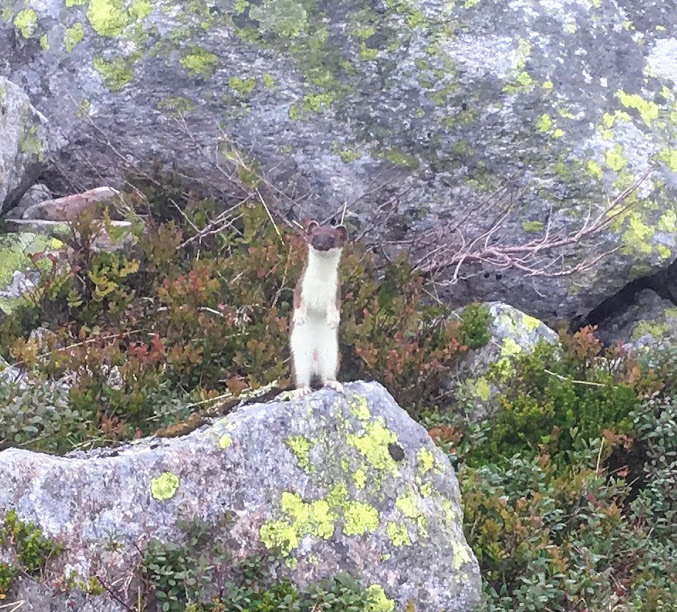 Vi fekk berre ta det som det kom, uansett måtte vi vel no snart vera oppe? Og medan vi stod og studerte kartet, fekk vi brått besøk av denne kjekke nyskjerrigper’en…