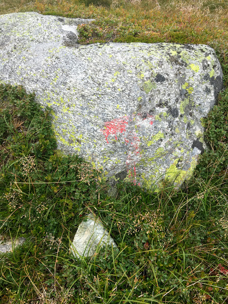 Men så, etter å ha kome opp på ein topp, vart stien bortevekk! I allefall såg ikkje vi meir til den, og ikkje var det gitt kor den gjekk vidare heller. Då måtte vi, som vi plar gjera på desse kantar, berre peisa oppover der det såg greit ut å gå…