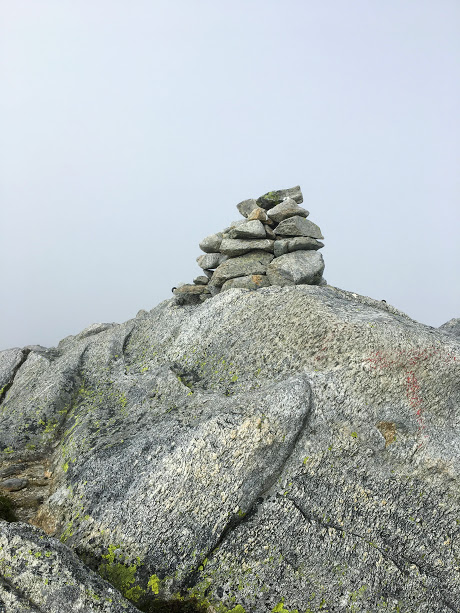 Vi hadde litt diskusjonar på vegen mot Gråfjell. Det er rart kva litt (ok, mykje) skodda kan gjera med geografien, vi var ikkje alltid heilt einige om kor vi var og kor vi skulle 🙂 Men så lenge vi ville i same retning gjorde det ikkje så mykje 😉 Det som forvirra litt i tillegg til skodda, var at eindel småvatn rett og slett har tørka inn og forsvunnet i varmen, og dei store vatna var jo og eindel midre enn dei plar. Men det er jo ikke så lett å gå seg vill her oppe, så uansett kor vi var og ikkje, så fann vi igjen småvardane innimellom og på slutten så kom vi inn på dei raude T’ane som kjem opp i frå Omvikedalen si sida og.