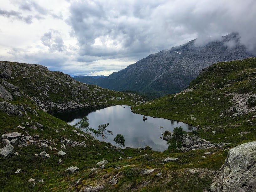Frå Hjort hadde vi utsikt rett inn på Fjellhaugvatnet.