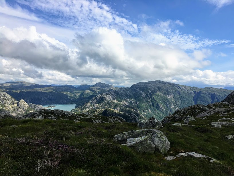 Tilbakeblikk. Den lyse flekken mitt i biletet er Langelivatnet i Tveitedalen 🙂