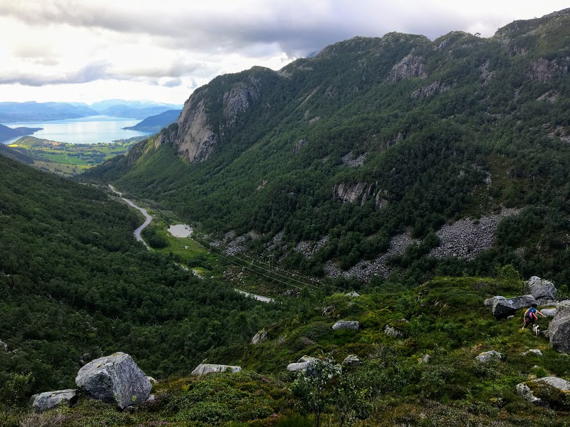 Vi haldt på planen vår om å fylgja stien ned på Omvikdalsida. Vi gleda oss til å sjå Dalsvatna og utsikta ned i dalen. Vi visste og at det kom til å bli bratt, men ana nok ikkje kor bratt…