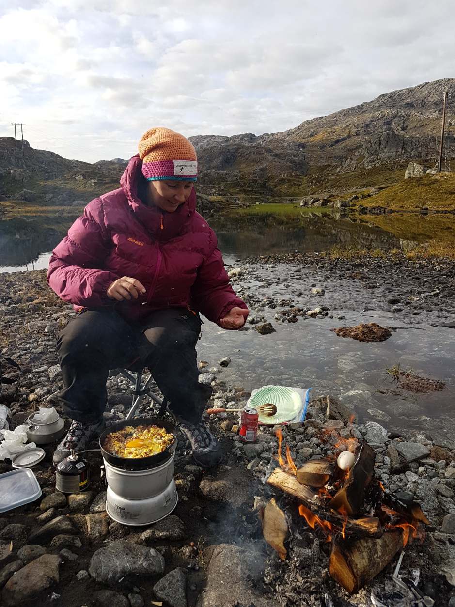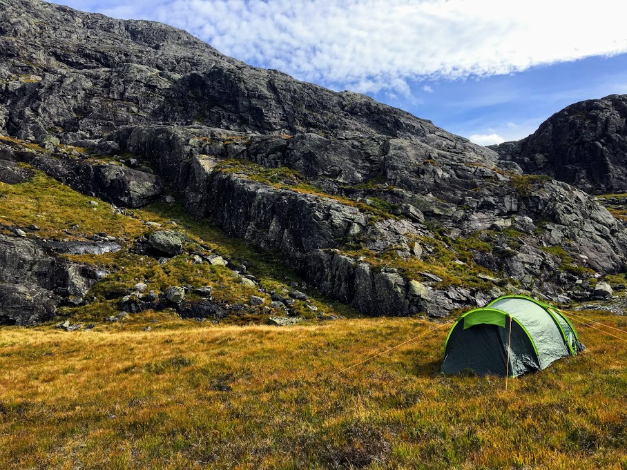 Teltet var på plass og vi kunne senkja skuldrane og setja oss ved bålet og….