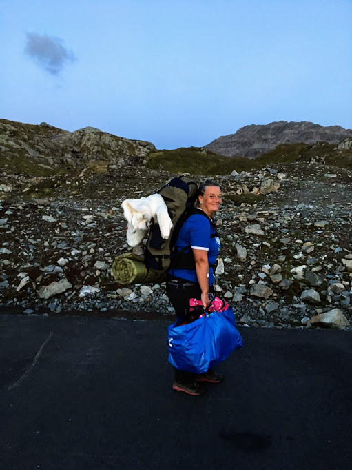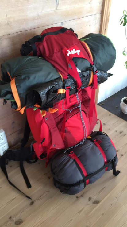 Eg hadde i bakhovudet når eg pakka at vi skulle gå ganske bratt oppover eit langt stykke, og eg prøvde verkeleg å pakka fornuftig. Men, når eg var ferdigpakka….