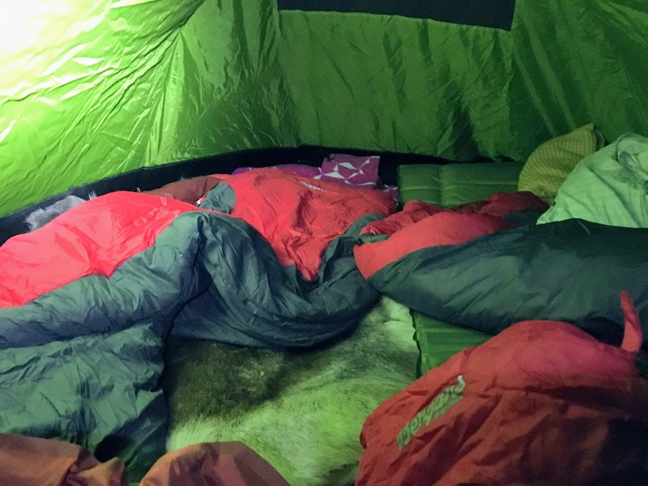 Her sat vi å pludra om så mangt utover kvelden, men til slutt var det tid for å trekkja inn i teltet.