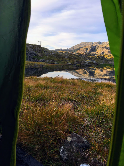Heldigvis såg plassen lika fin ut som vi hadde sett for oss, så dette kom til å bli bra. No hadde det blitt så seint på kvelden allereie at det hadde byrja myrkna, så…