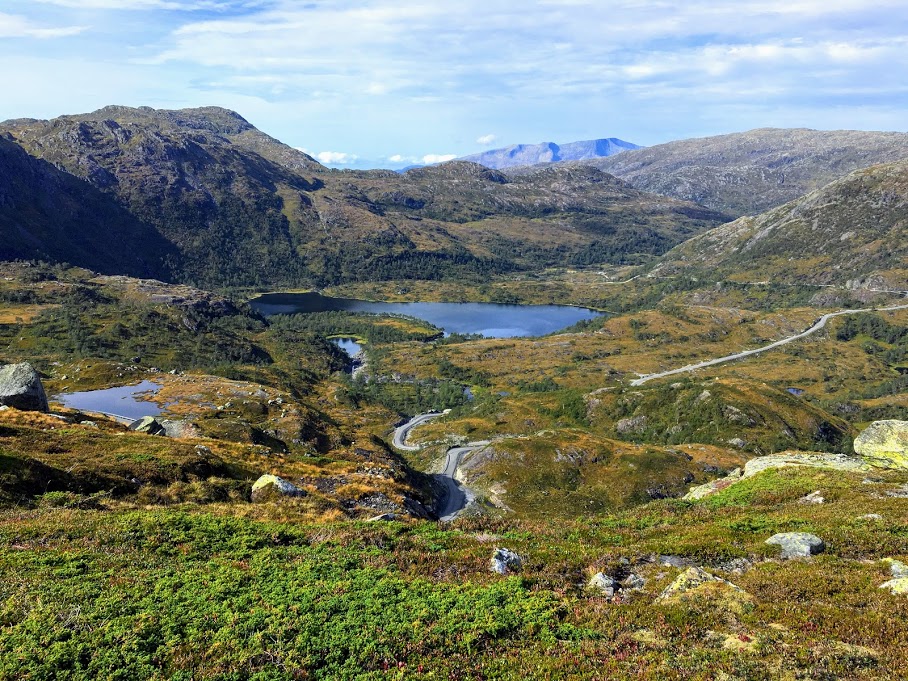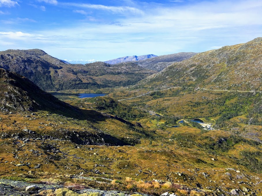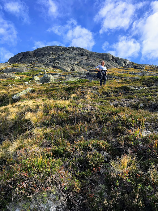 Vi bestemte oss for å gå bort på toppane som låg lenger til venstre for å kunna få enda betre utsikt mot Brandviksvatnet.