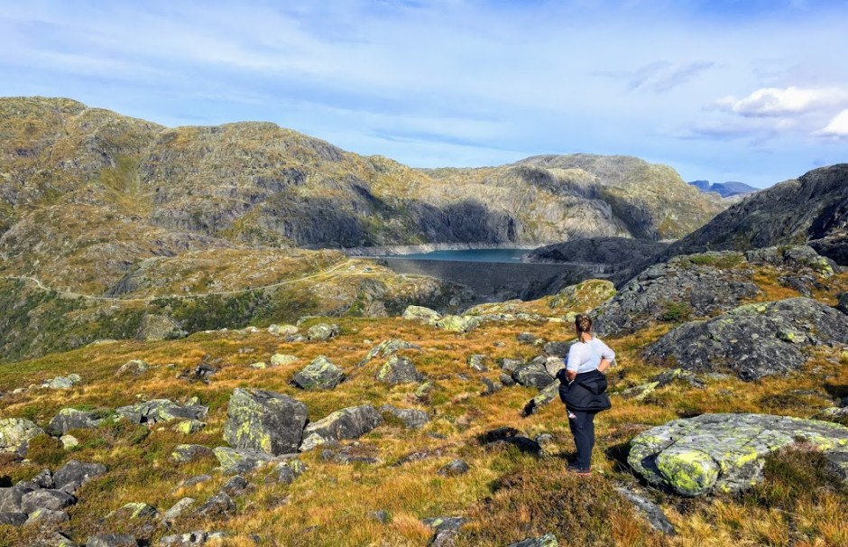 No nærma vi oss kanten og kunne kikka rett bort på Blådalsvatnet og demninga.