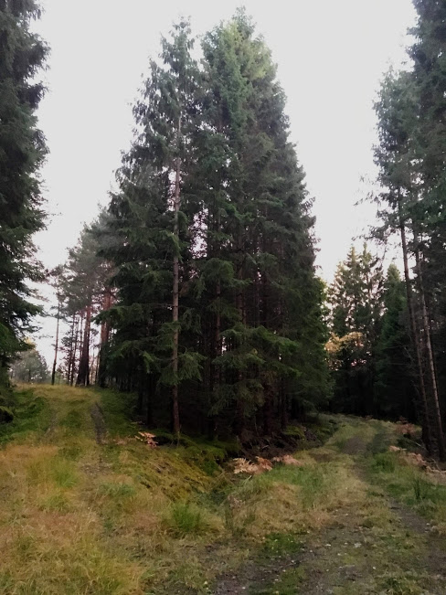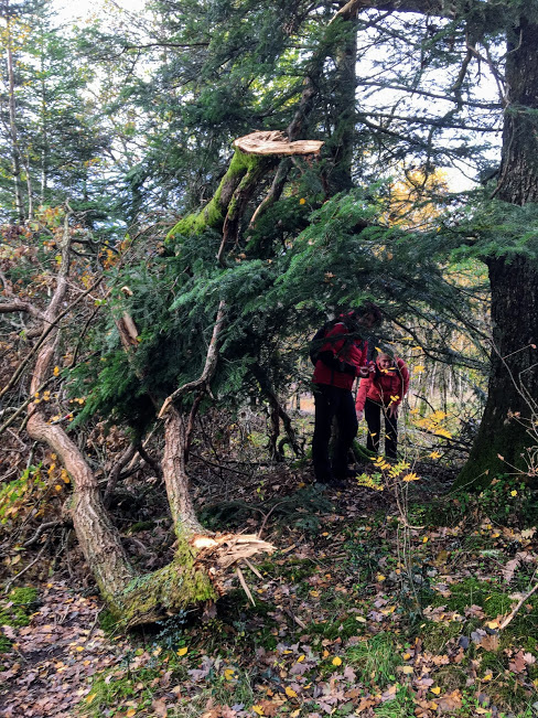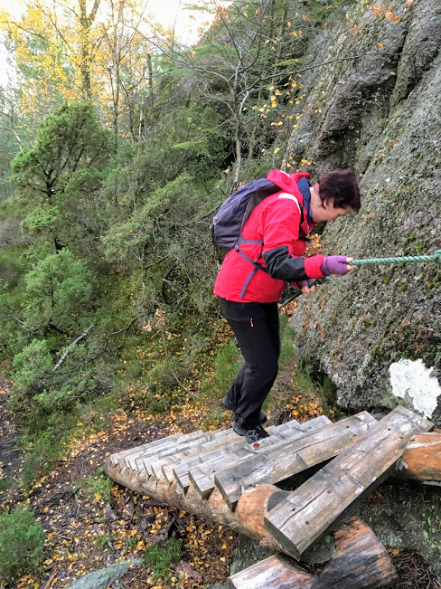 Ikkje så godt synleg sti alle plasser, men den var greit merka med raude prikkar på trea…