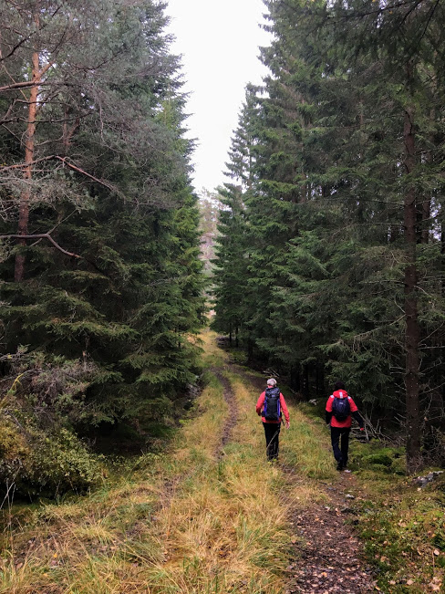 Vi fortsatte litt på det vi syntes såg ut som ein sti, utan å finna noko. Marianne ana ugler i mosen og skjøna nok før oss at vi var heilt på villspor….
