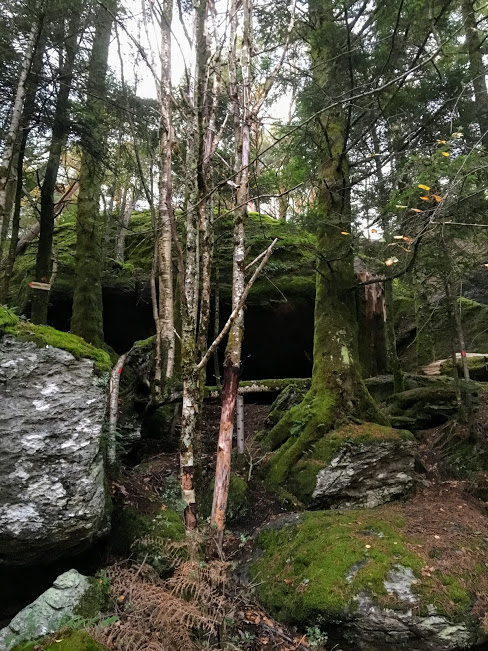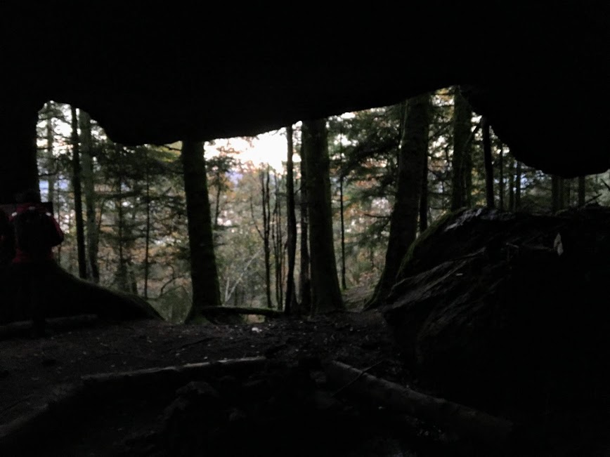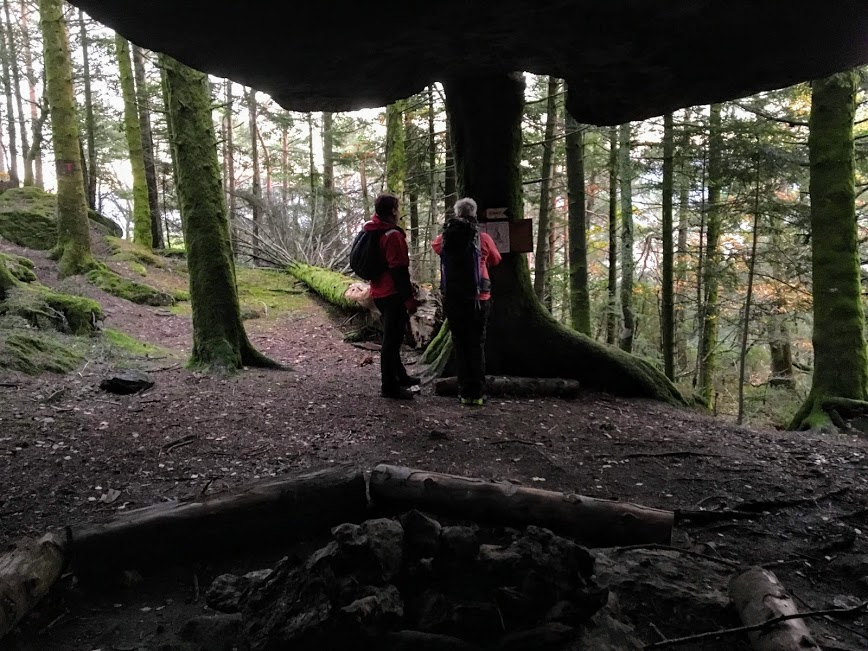 Medan vi sat her kom det ei lokal dame forbi på tur. Eg trur vi kvapp lika mykje både ho og vi 🙂 Ho kunne då fortelja at om vi fylgde stien tilbake slik vi hadde tenkt, så var det ikkje så lenge før vi gjekk rett på Lyhaughelleren! Då vart vi jo enda meir nøgd enn vi allerie var 🙂