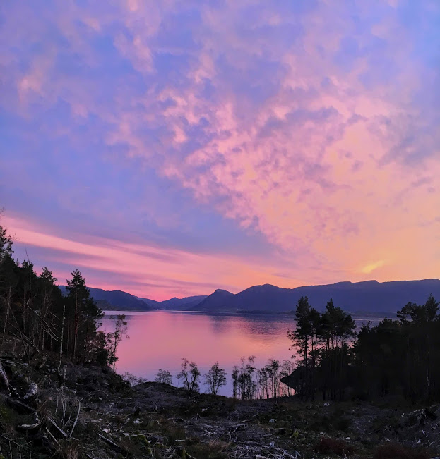 Det var mange flotte fargar å sjå på himmelen på tilbaketuren 🙂 No var vi vet «tornadoområdet» igjen – berre mykje nærare sjøen.