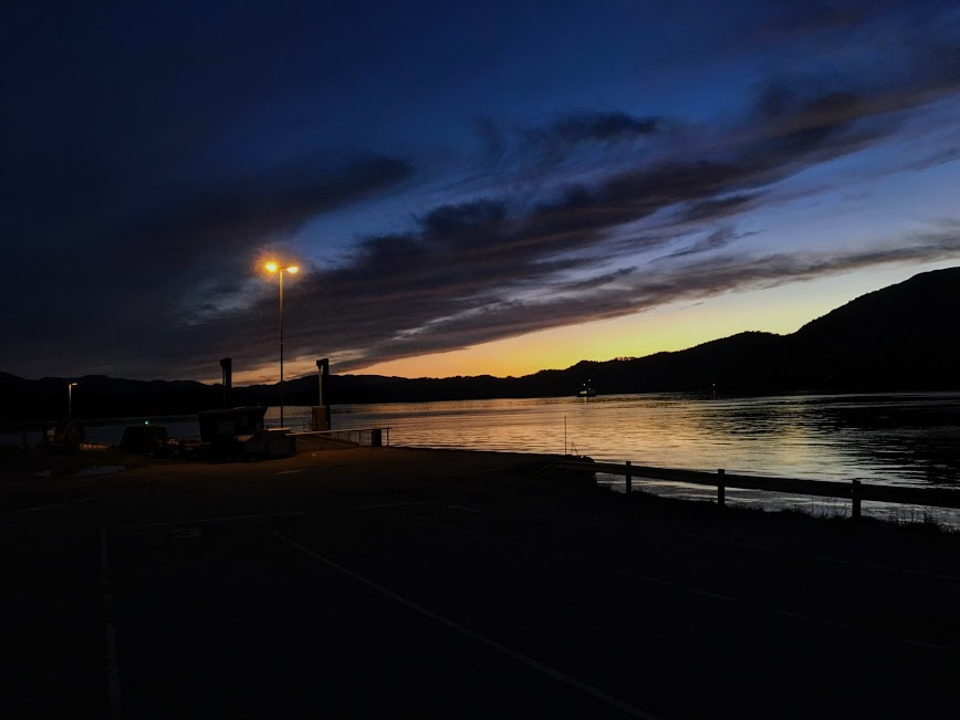 ….før vi ankom Sydnes ferjekai – omtrent samstundes som ferja 🙂