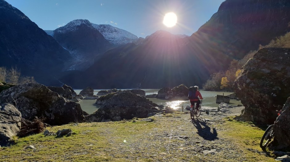 Og aldri har vel eg vore meir glad for å sjå eit par syklar som i går kveld! Endeleg kunne eg få av meg sekken – den hadde dei nemleg lova å ta med seg ned 🙂 Og det var reine lykkefølelsen å kunna fortsetja siste etappe ned til parkeringsplassen utan sekk på ryggen 🙂