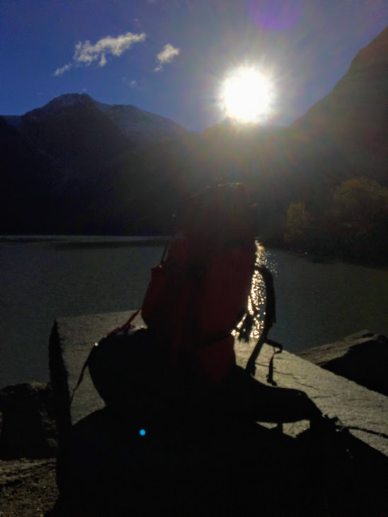 For då vi kom ned til vatnet, var det allerie byrja bli mørkt, sjølv om klokka ikkje var så mykje. Den eine timen vi hadde skrudd klokka tilbake i laupet av natta gjorde nok sitt.