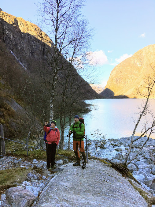 Det ser ikkje slik ut, men det er ganske drygt å gå langs vatnet bort til stien opp til Fynderdalen….
