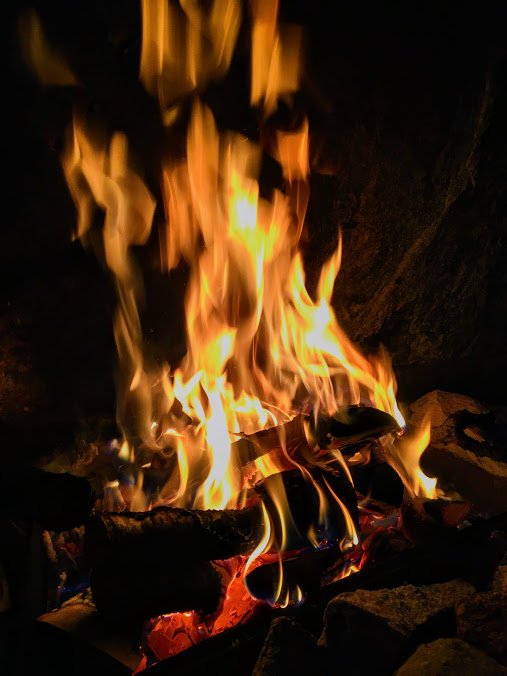 Det var blikkstille ved hytta og enda lyst og fint ei stund til, så då bestemte vi oss for å tenna eit bål ute medan vi venta på at det skulle bli varmt inne. Og medan vi sat rundt bålet og kosa oss, kom jammen Svein Vidar og leverte ut noko han hadde dratt utav sin sekk…