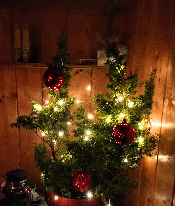 ….og så hadde han sjølvsagt pyta juletreet 🙂 3 nye raude kuler var komen på i år 🙂