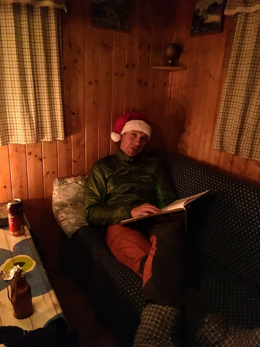 Tradisjonen tru så sank vi litt i saman etter julemiddagen og opninga av pakkar 🙂 Det vart difor ikkje så veldig seint før vi kraup i soveposane 🙂 Det var sikkert lika greit, for på søndag hadde vi planlagt ein litt lang gåtur.